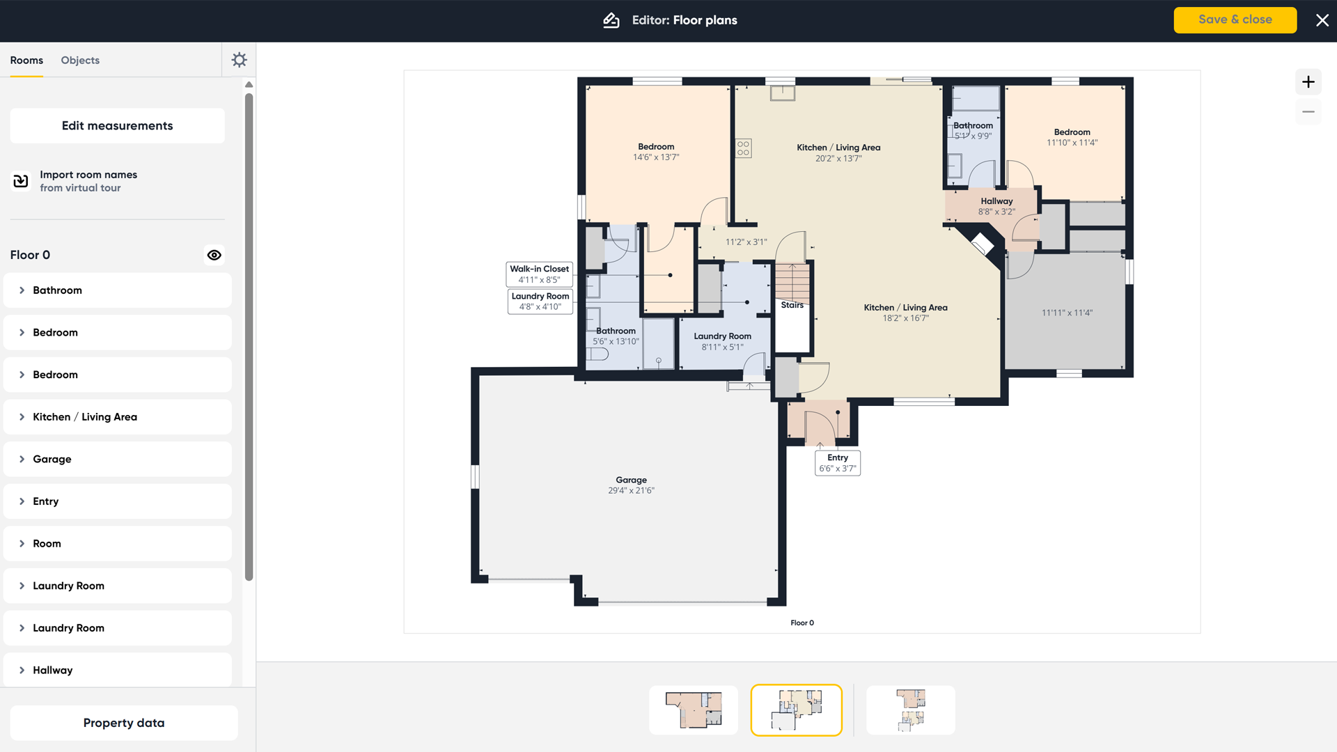 Rename rooms, tweak dimensions, apply labels and brand colors. Every change updates measurements and exports automatically—no CAD required.